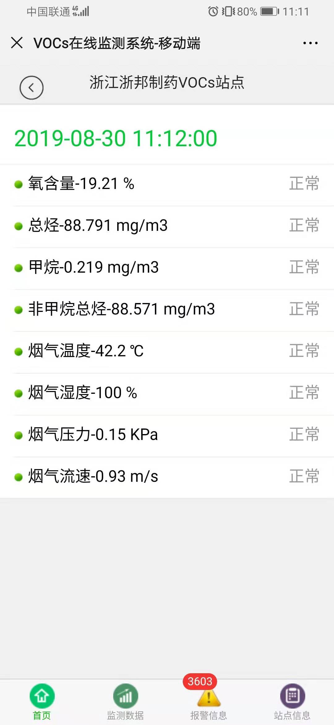 VOCs監(jiān)測系統(tǒng)平臺-手機端數(shù)據(jù)